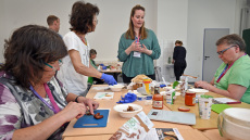 Darüber hinaus bot der Krebspatiententag am Nachmittag eine Vielzahl von interaktiven Workshops und Panels (Expert*innengespräche) an. Einer der sehr gut besuchten Workshops, geleitet von Verpflegungsmanagerin Nadine Zima und der Ernährungswissenschaftlerin Viktoria Mathies, beschäftigte sich mit dem Thema "Ganzheitliche Krebsbehandlung: Lifestyle-Faktor Ernährung“. Den Teilnehmenden wurde die Gelegenheit geboten, nicht nur theoretisches Wissen zu erlangen, sondern auch praktische Fähigkeiten zu erwerben, indem sie selbst Rezepte ausprobieren konnten und lernten, wie eine gesunde Ernährung Teil eines umfassenden Behandlungsansatzes sein kann.